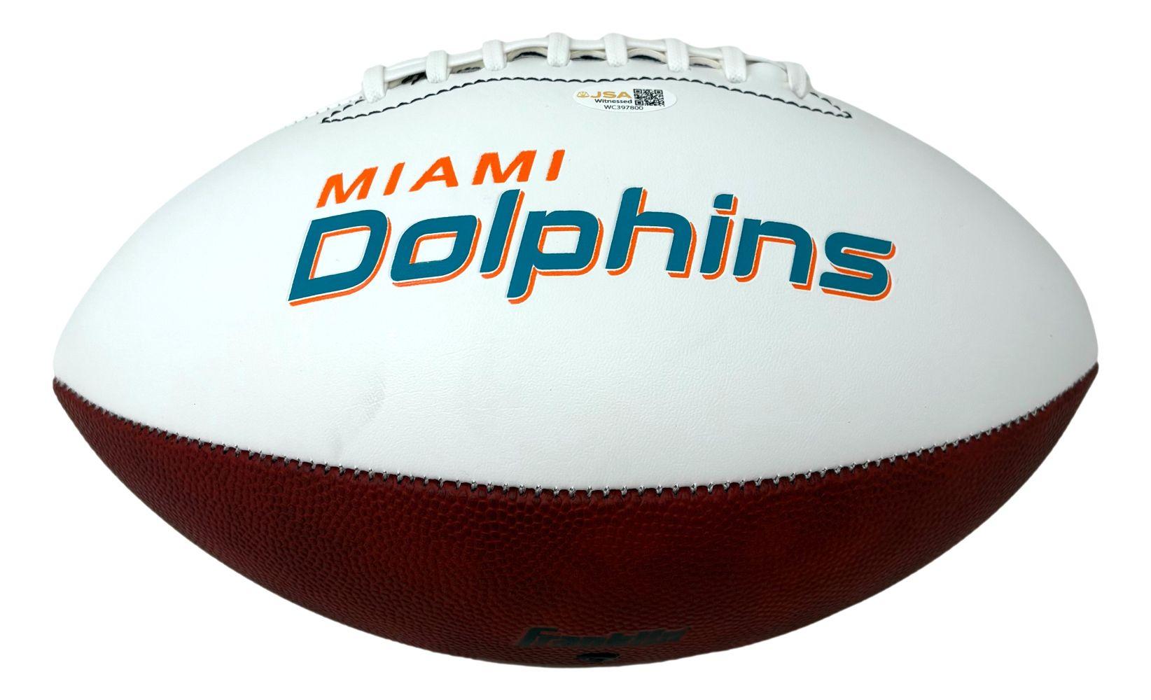 Miami Dolphins logo football has been hand-signed and inscribed by Ricky Williams.