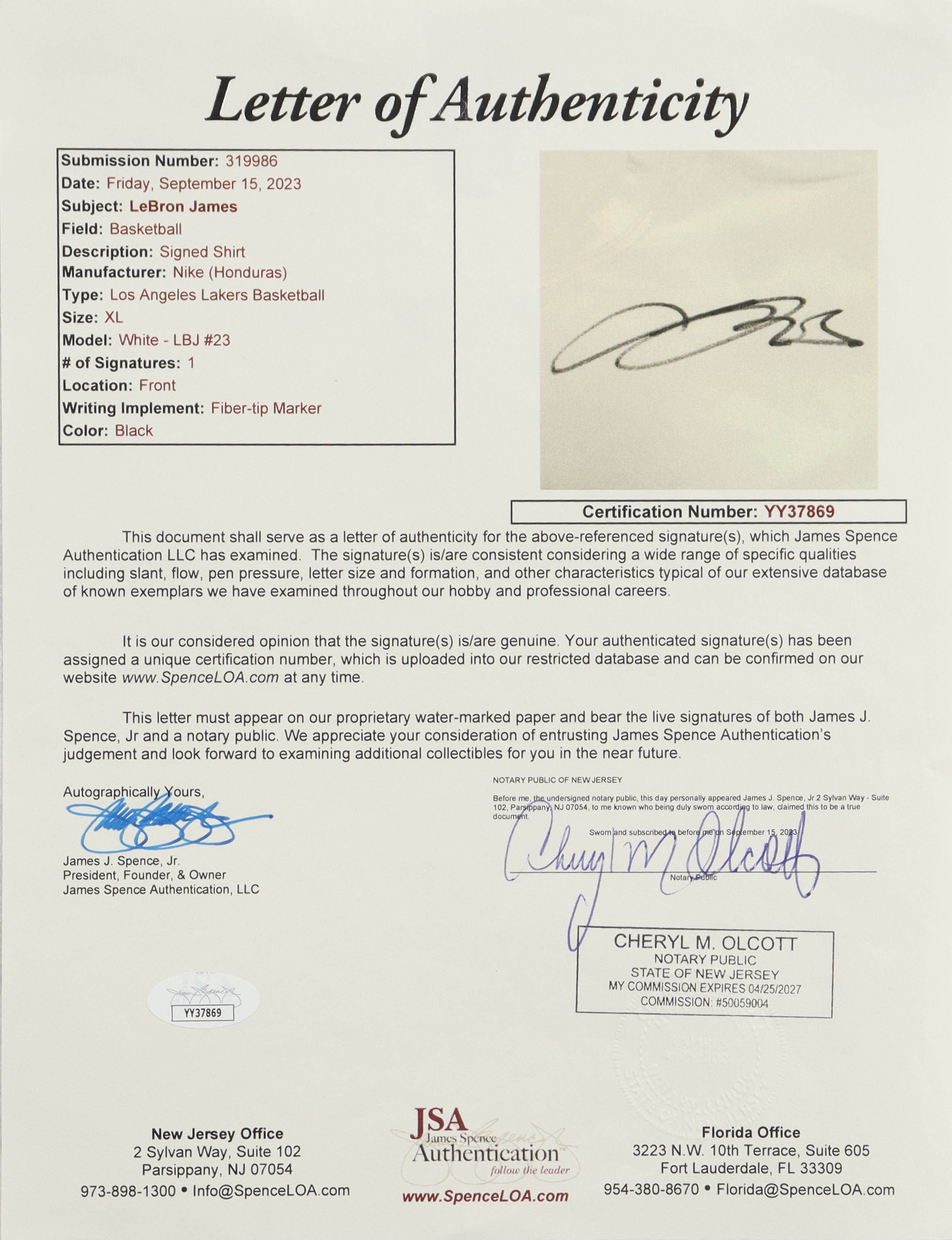 The autograph(s) includes an official James Spence Authentication (JSA) hologram and matching LOA for authenticity purposes.