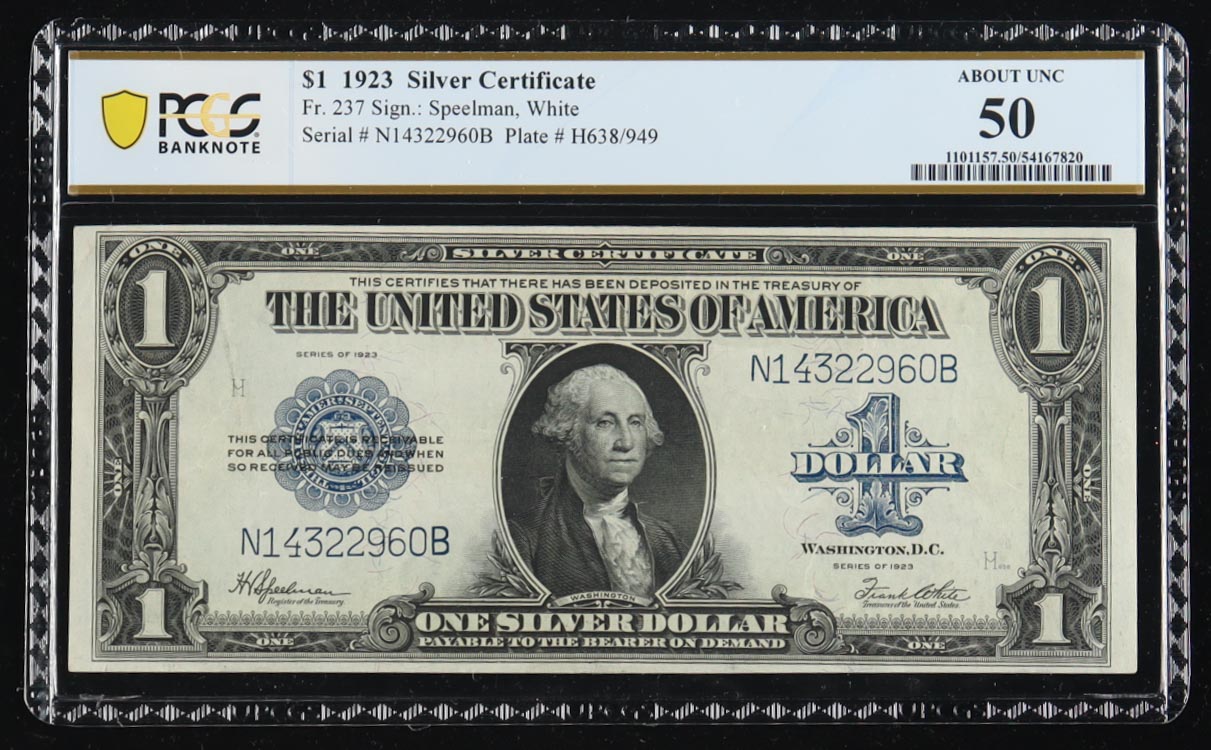 1923 U.S. $1 "Horse Blanket" Silver Certificate - Fr. 237 Signed: Speelman / White (PCGS About Unc 50)
