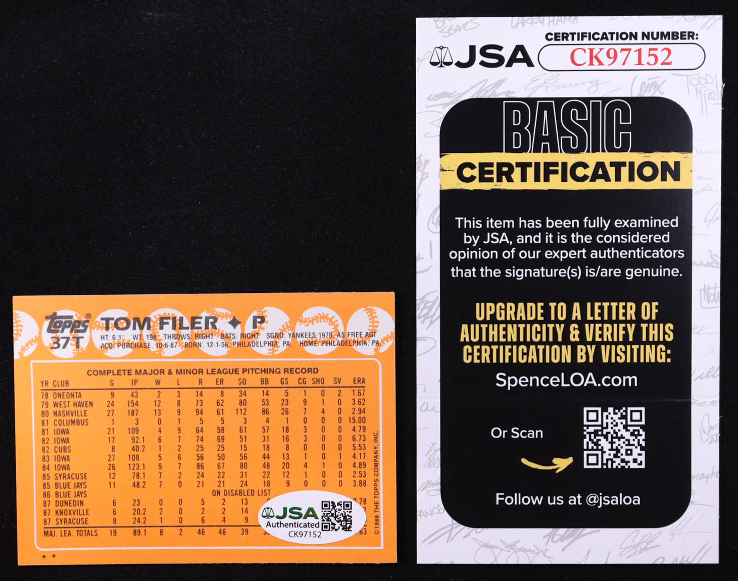 Tom Filer Signed 1988 Topps Traded #37T (JSA)