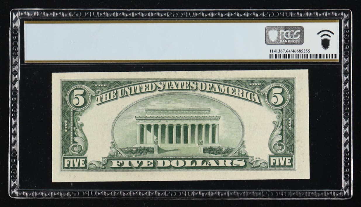 1934-D U.S. $5 Silver Certificate "Wide I" Blue Seal - Fr. 1654 (SA Block) Signed: Clark / Snyder (PCGS Choice Unc 64 PPQ)