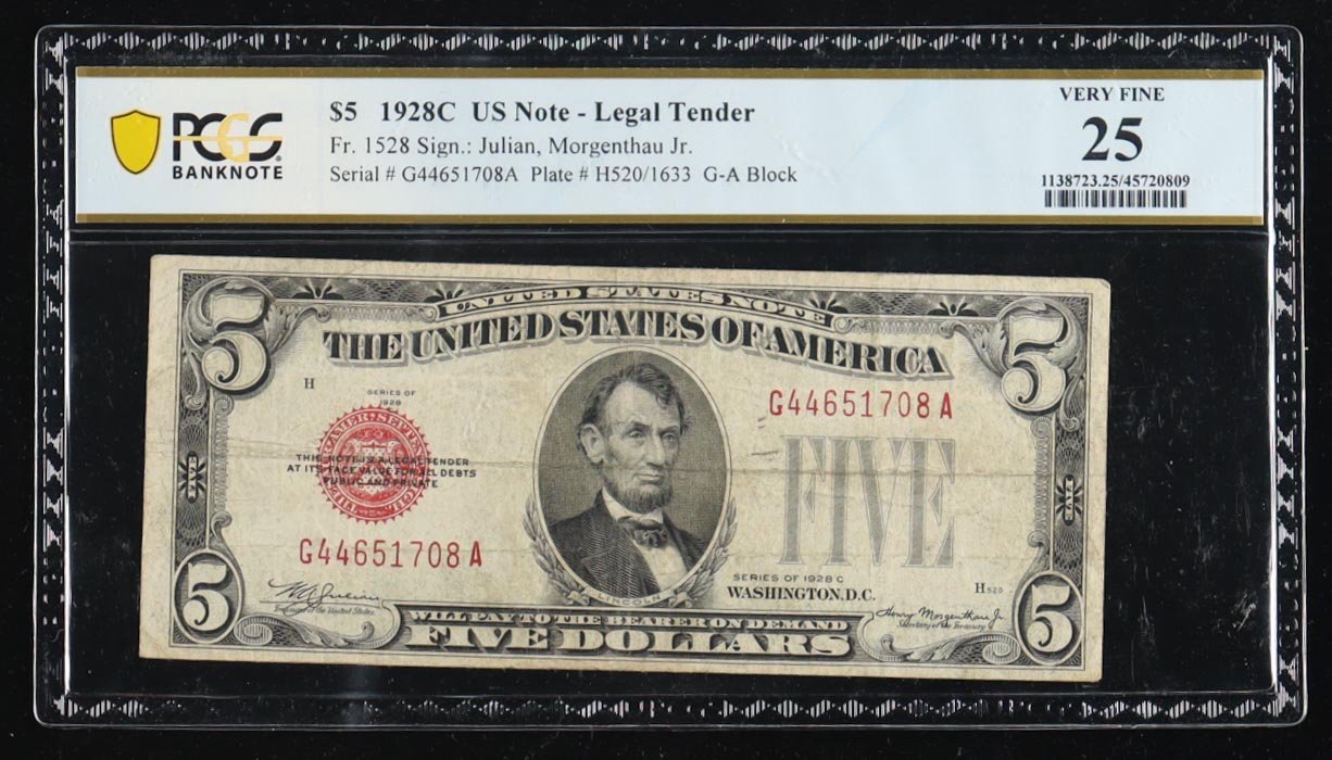 1928-C U.S. $5 Legal Tender Note, Red Seal - Fr. 1528 (GA Block) Signed: Julian / Morgenthau Jr. (PCGS Very Fine 25)