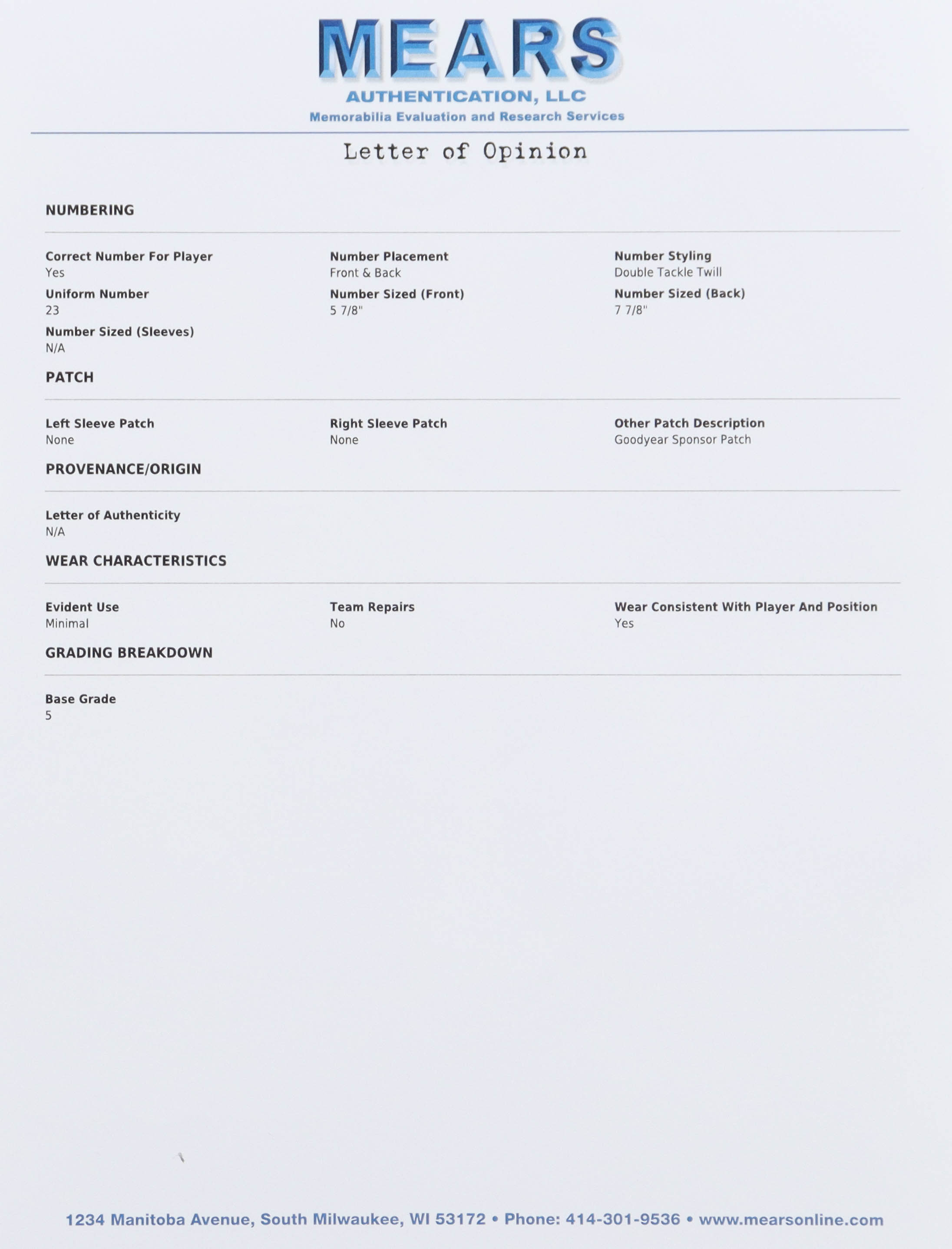 The jersey includes an official MEARS Authentic LOA for authenticity purposes.