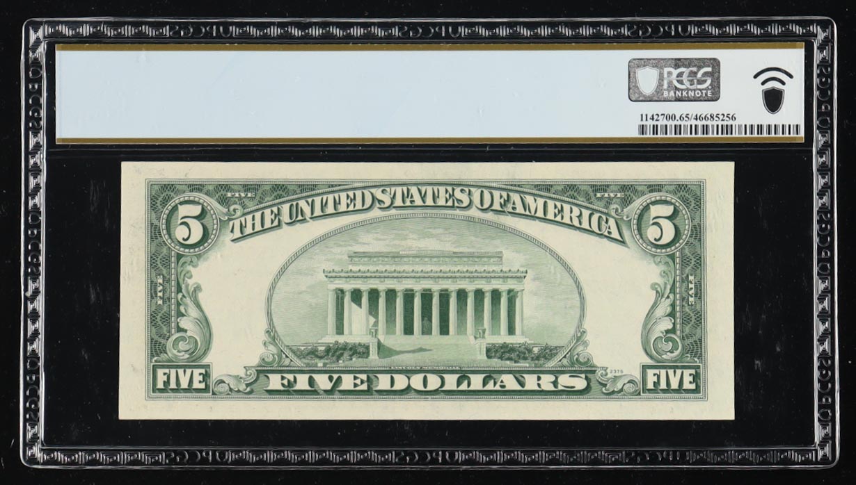 1953-A U.S. $5 Silver Certificate, Blue Seal - Fr. 1656 (FA Block) Signed: Priest / Anderson (PCGS Gem Unc 65 PPQ)