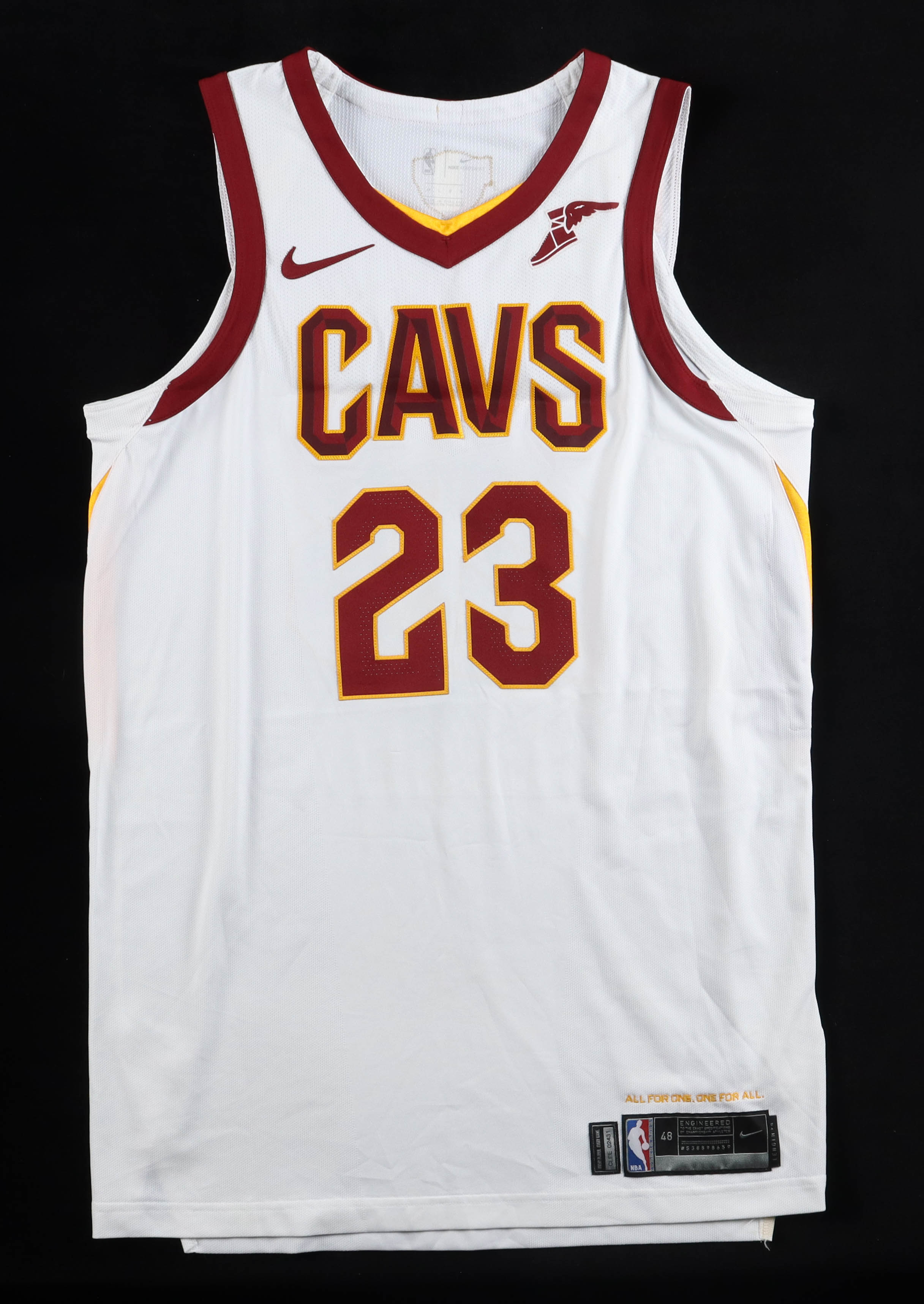 Authentic Nike jersey, size 48 (Length +4). The jersey was game-used by LeBron James during the 2017-18 season. (Cleveland Cavaliers).