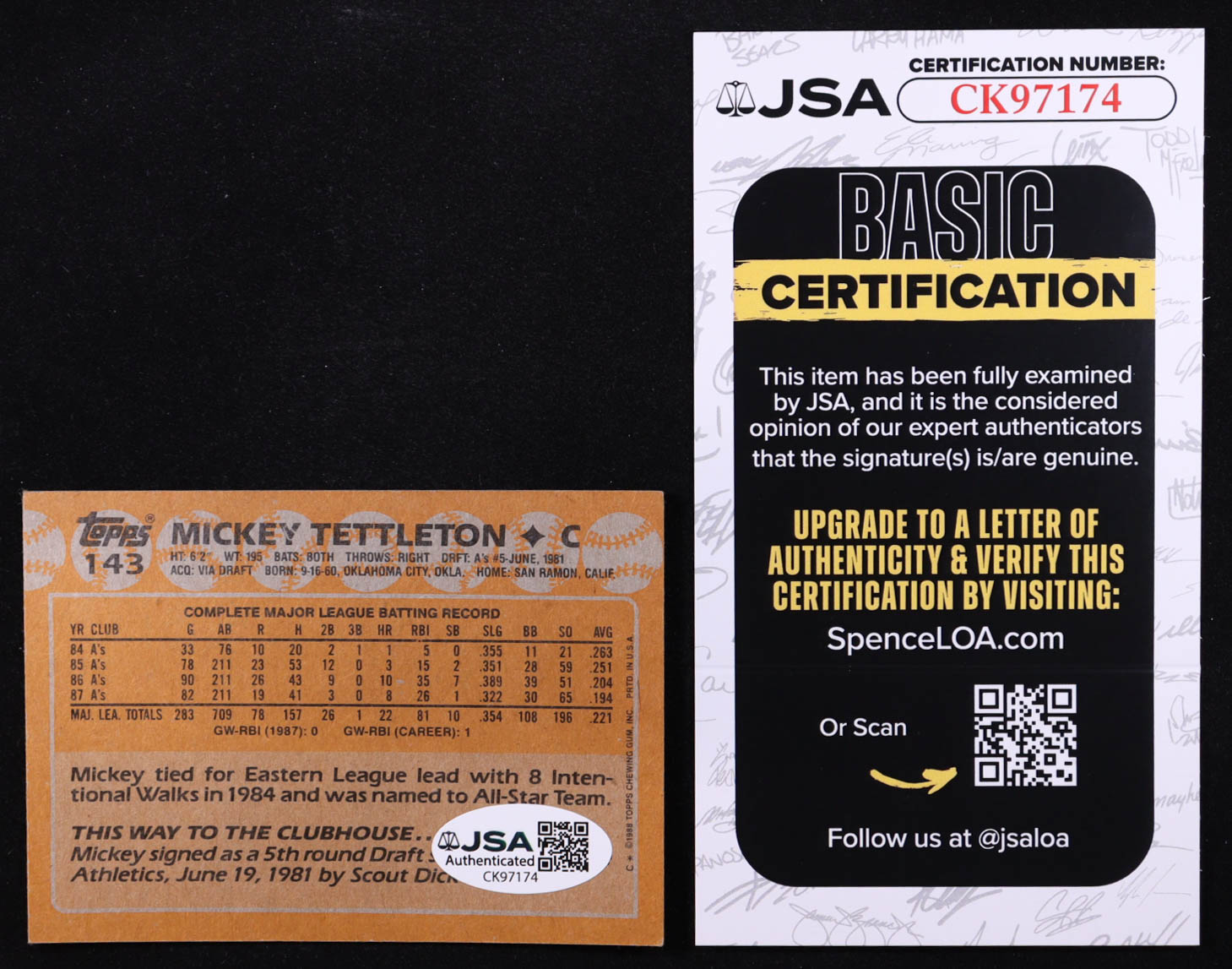 Mickey Tettleton Signed 1988 Topps #143 (JSA)