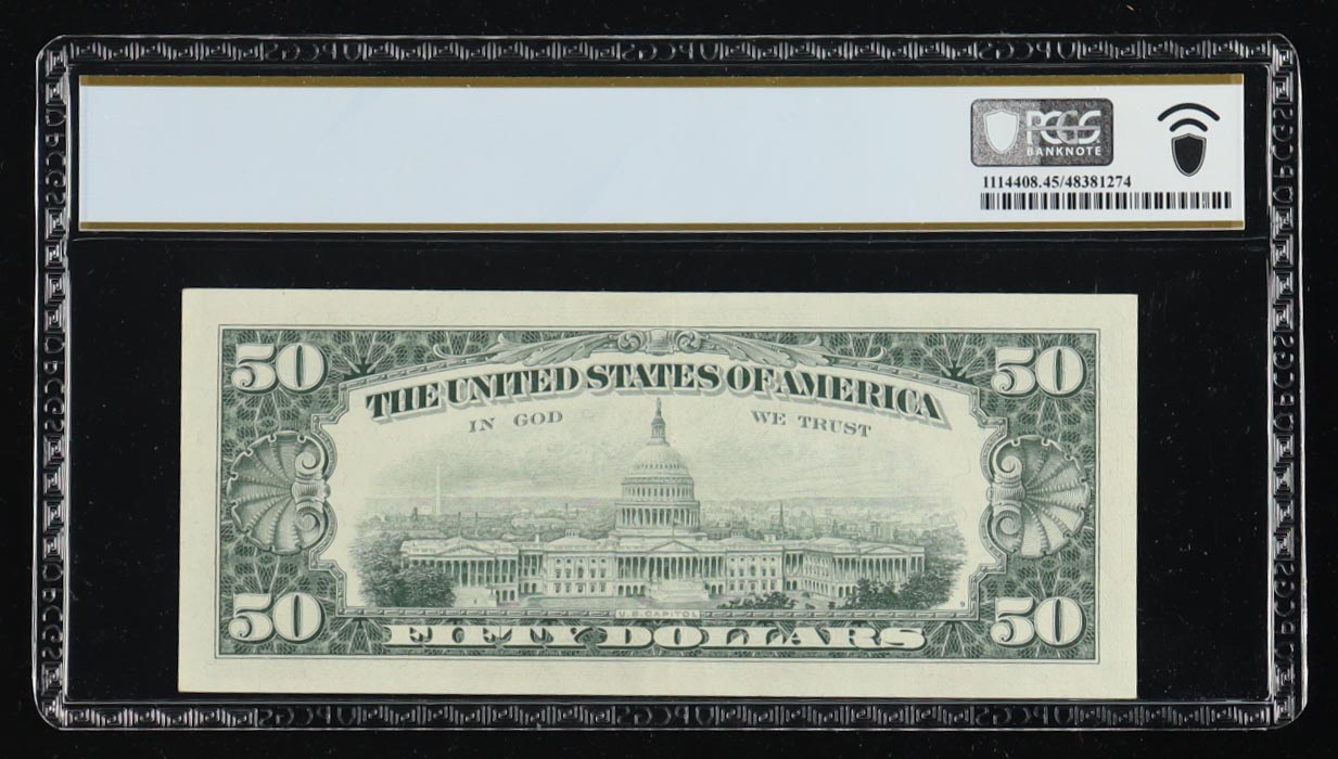 1963-A U.S. $50 Federal Reserve Note, San Francisco - Fr. 2113-L (LA Block) Signed: Granahan / Fowler (PCGS Choice XF 45 PPQ)