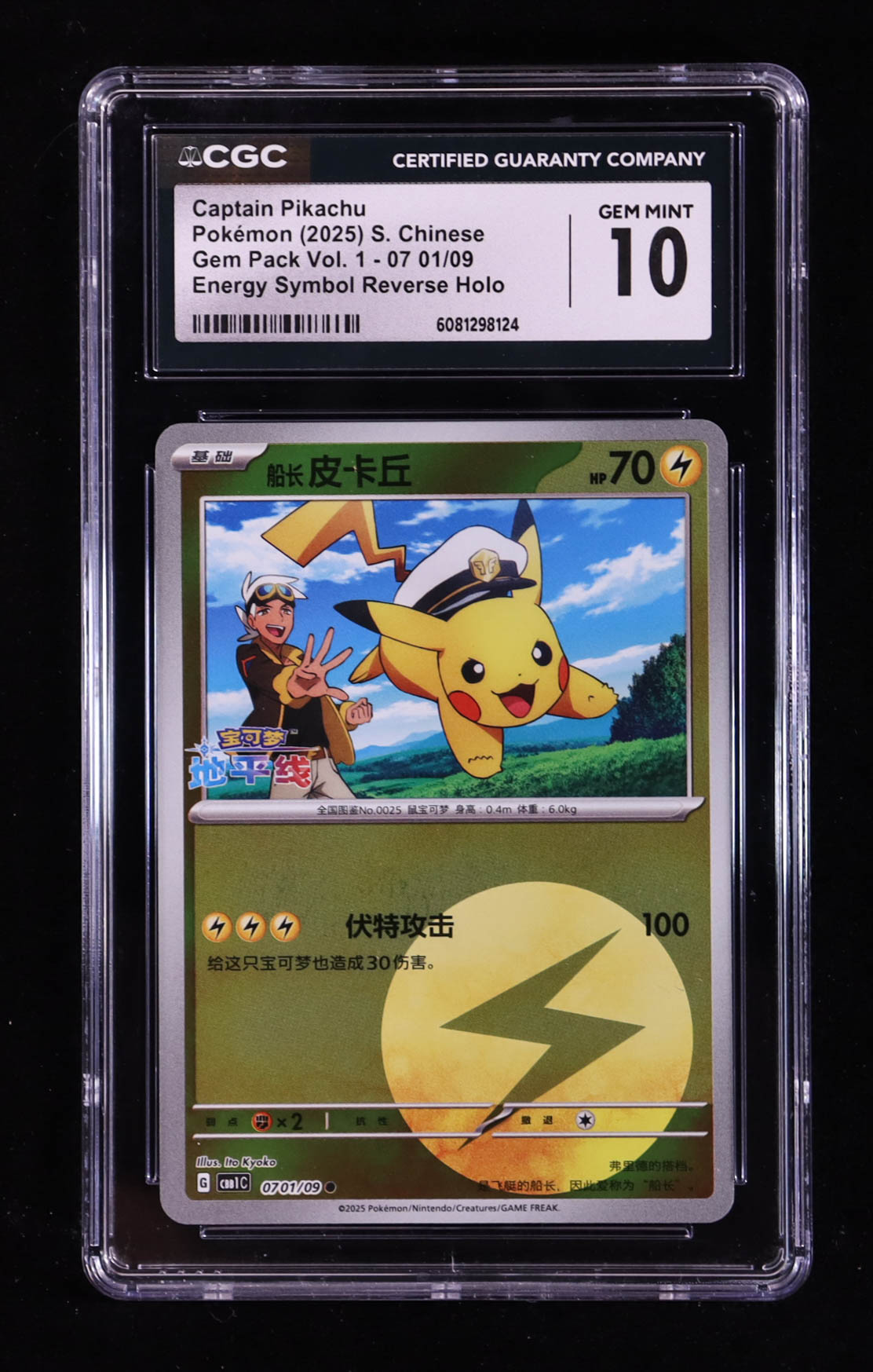 Captain Pikachu 2025 Pokemon Gem Pack Vol.1 Simplified Chinese #01 Holo (CGC 10)