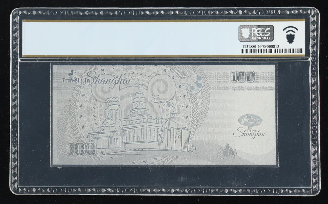 2016 China $100 Disney Dollar "Mickey & Minnie / Travel in Shanghai" - 1.5g .999 Fine Silver (PCGS Supreme Gem Unc 70 PPQ)