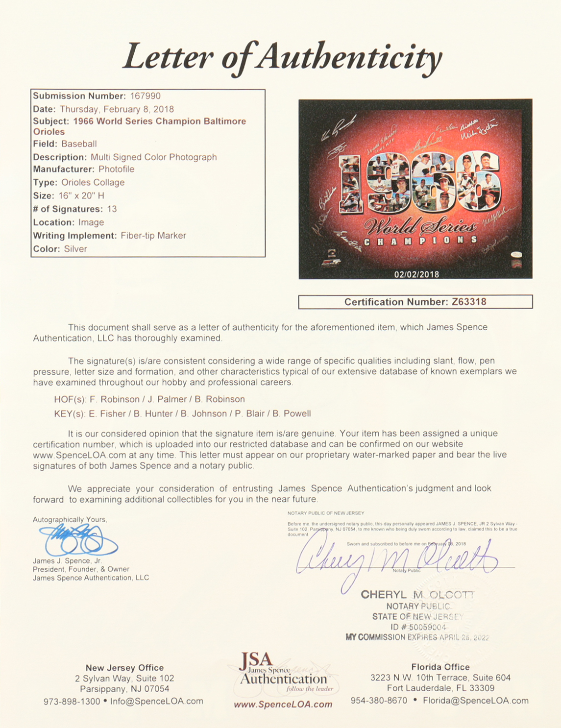The autograph(s) includes an official James Spence Authentication (JSA) hologram and matching LOA for authenticity purposes.