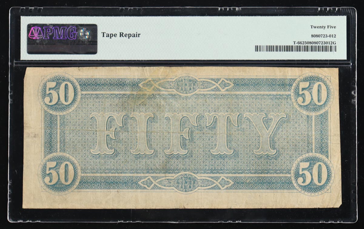 1864 Confederate $50 Currency Note, T-66 (PMG Very Fine 25)