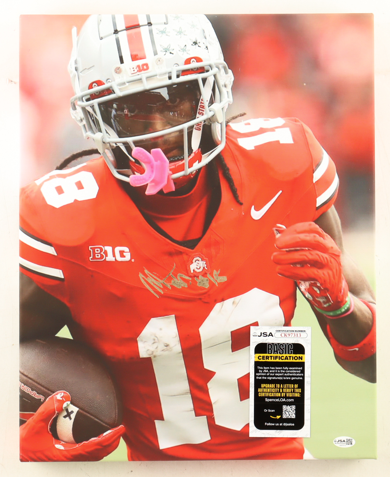 Marvin Harrison Jr. Signed Ohio State Buckeyes 16x20 Canvas Photo (JSA)