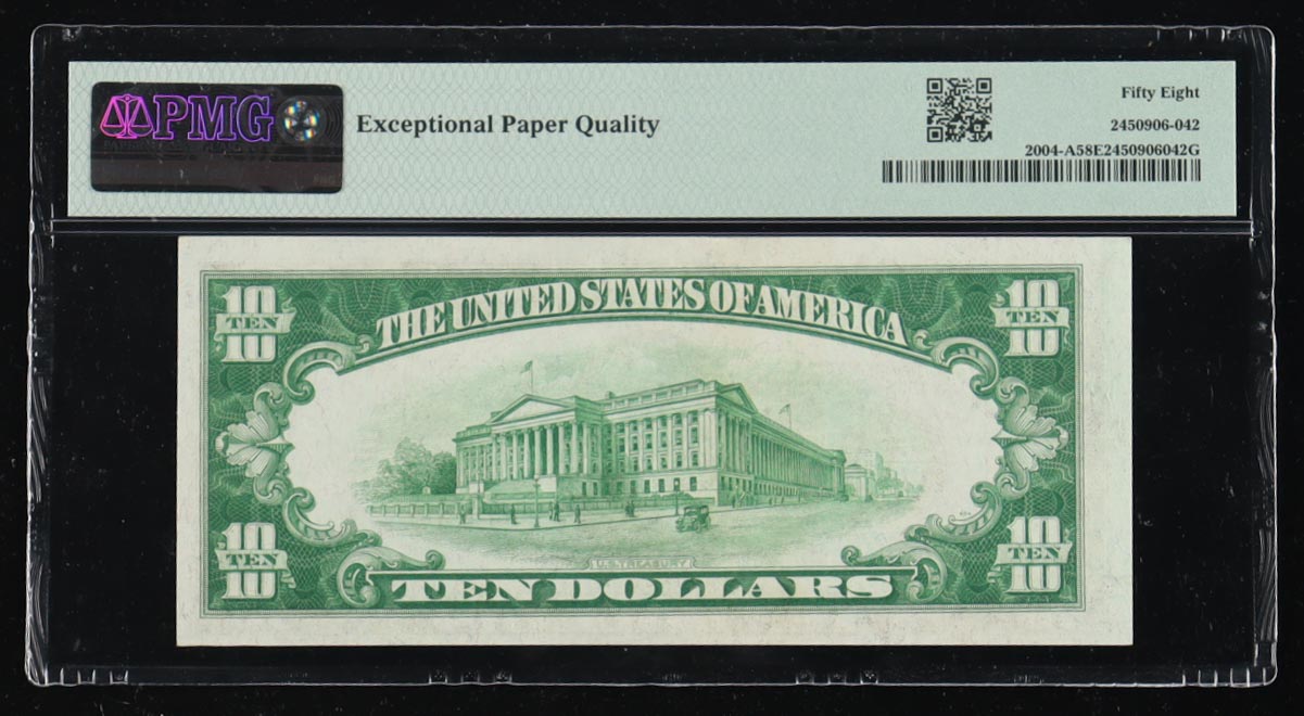 1934 U.S. $10 Federal Reserve Note, Boston - Fr. 2004-A (AA Block) Signed: Julian / Morgenthau (PMG Choice About Unc 58 EPQ)
