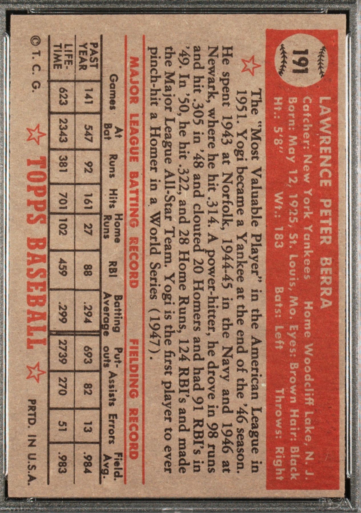 Yogi Berra 1952 Topps #191 (PSA 7)