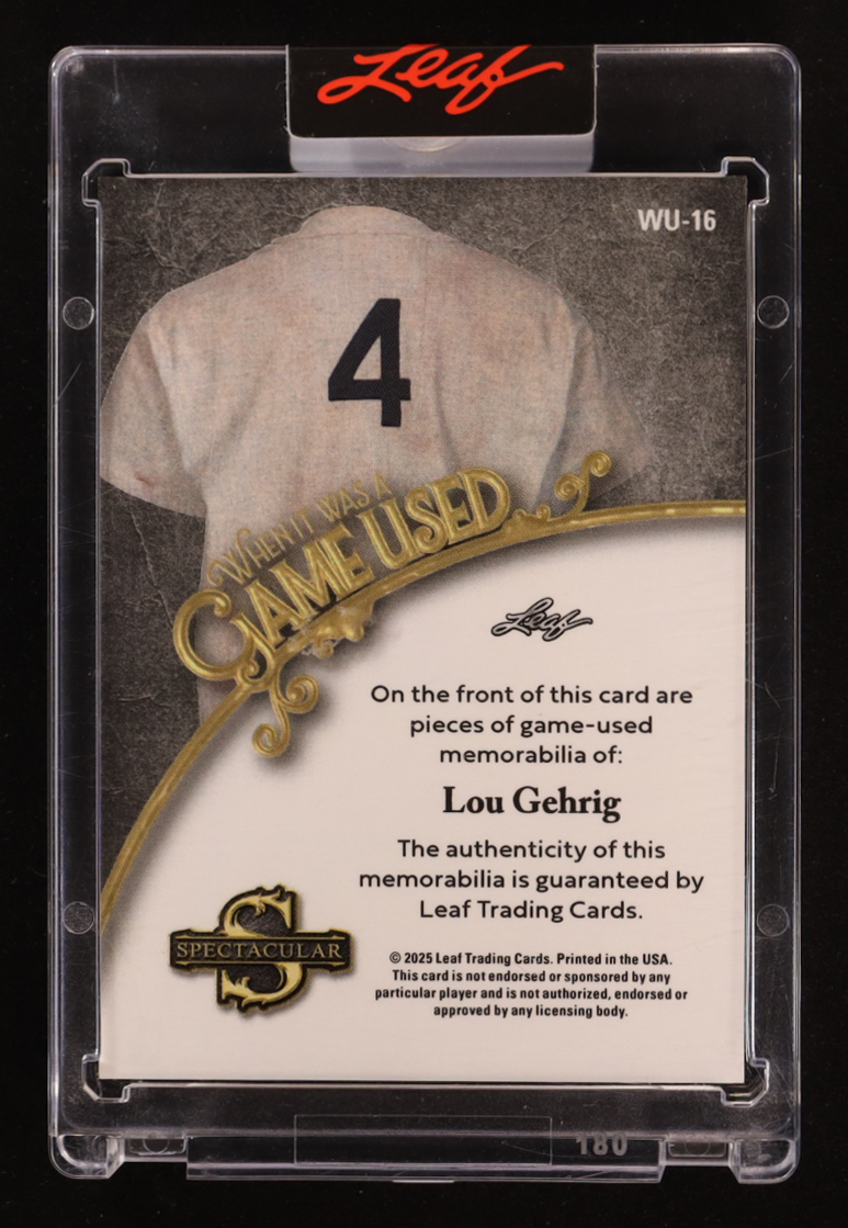 Lou Gehrig 2025 Leaf Spectacular When It Was Game Used Dual Memorabilia Spectrum Silver #WU16 #3/6