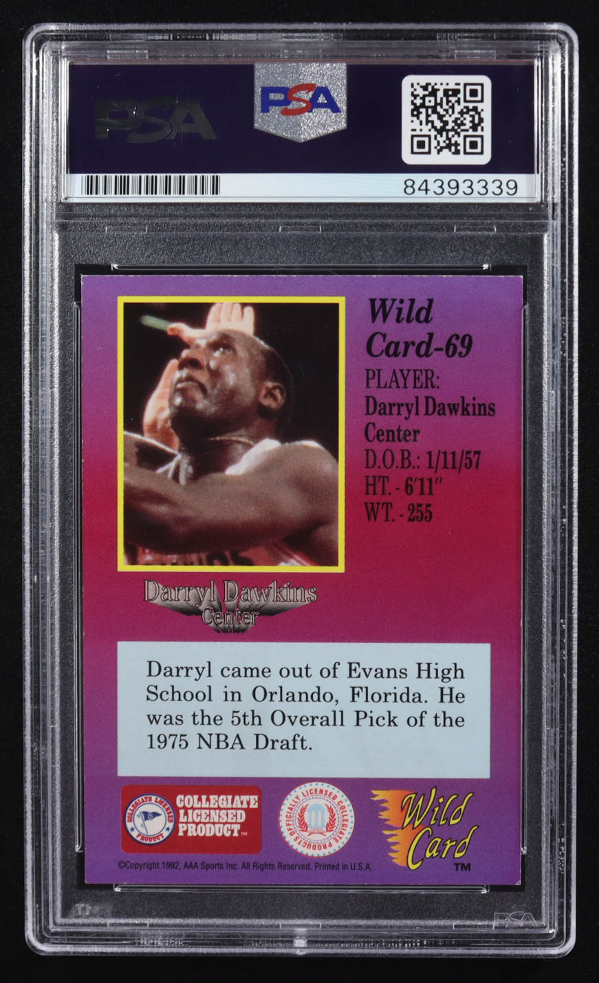 Darryl Dawkins Signed 1992 Wild Card Collegiate 1st Edition #69 (PSA)