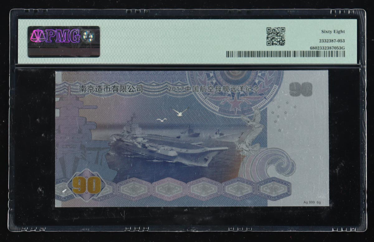 2017 China 90 Yen Aircraft Carrier Launching Commemorative - 6g .999 Fine Silver (PMG Superb Gem Unc 68)