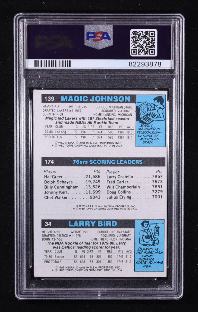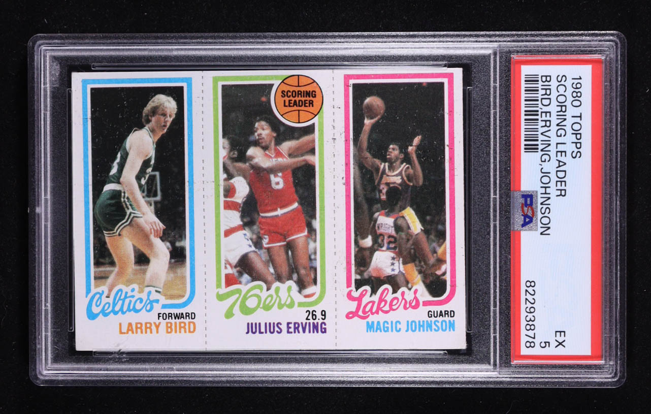 Larry Bird RC / 174 Julius Erving TL / 139 Magic Johnson 1980-81 Topps #6 34 RC (PSA 5)