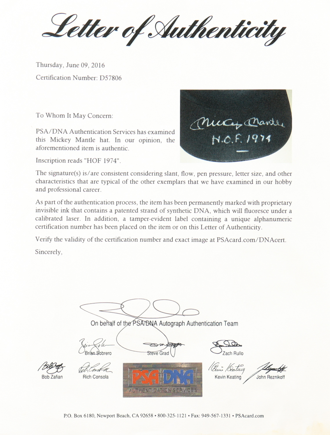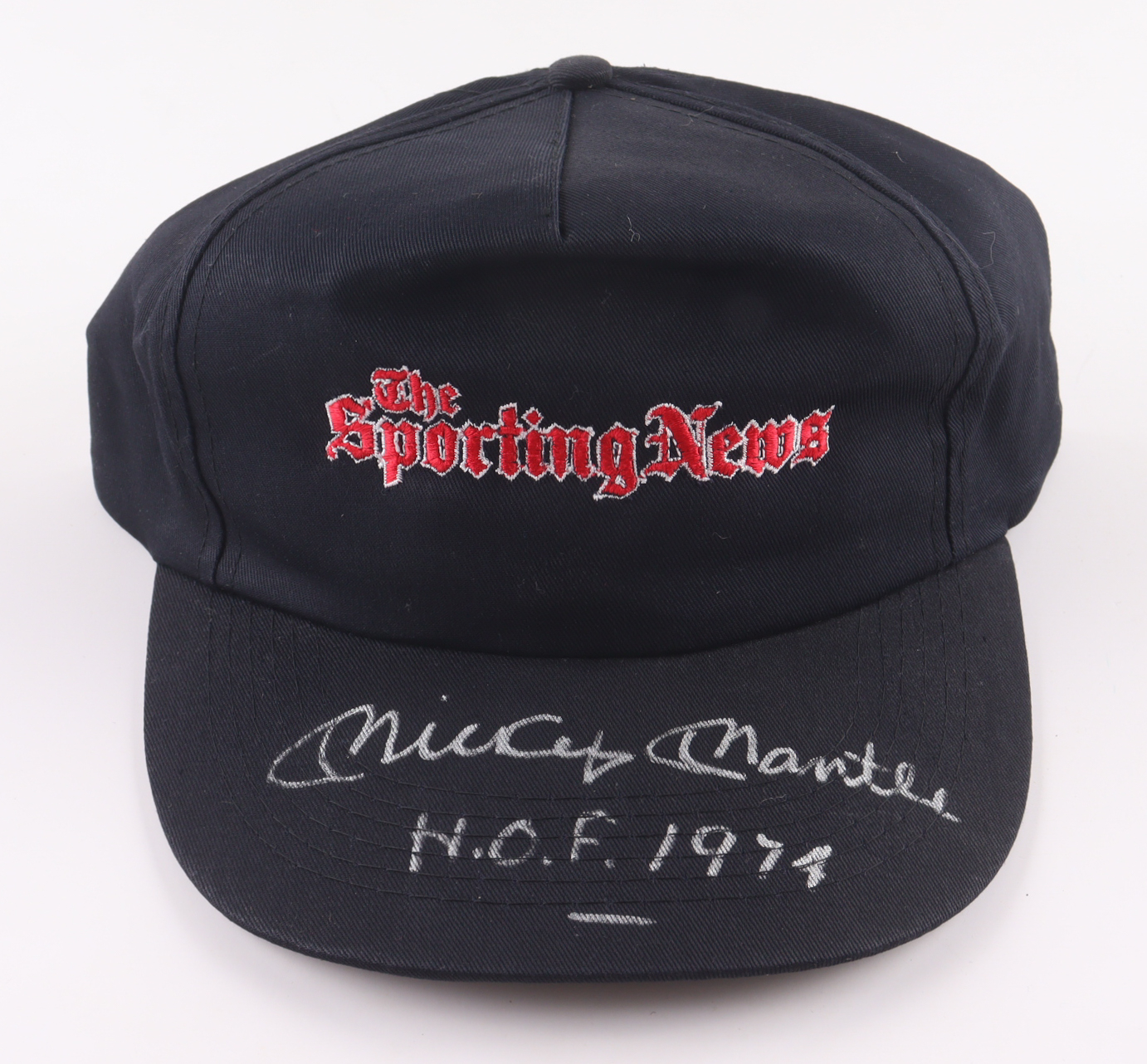 Mickey Mantle Signed The Sporting News Adjustable Hat Inscribed "HOF 1974" (PSA)