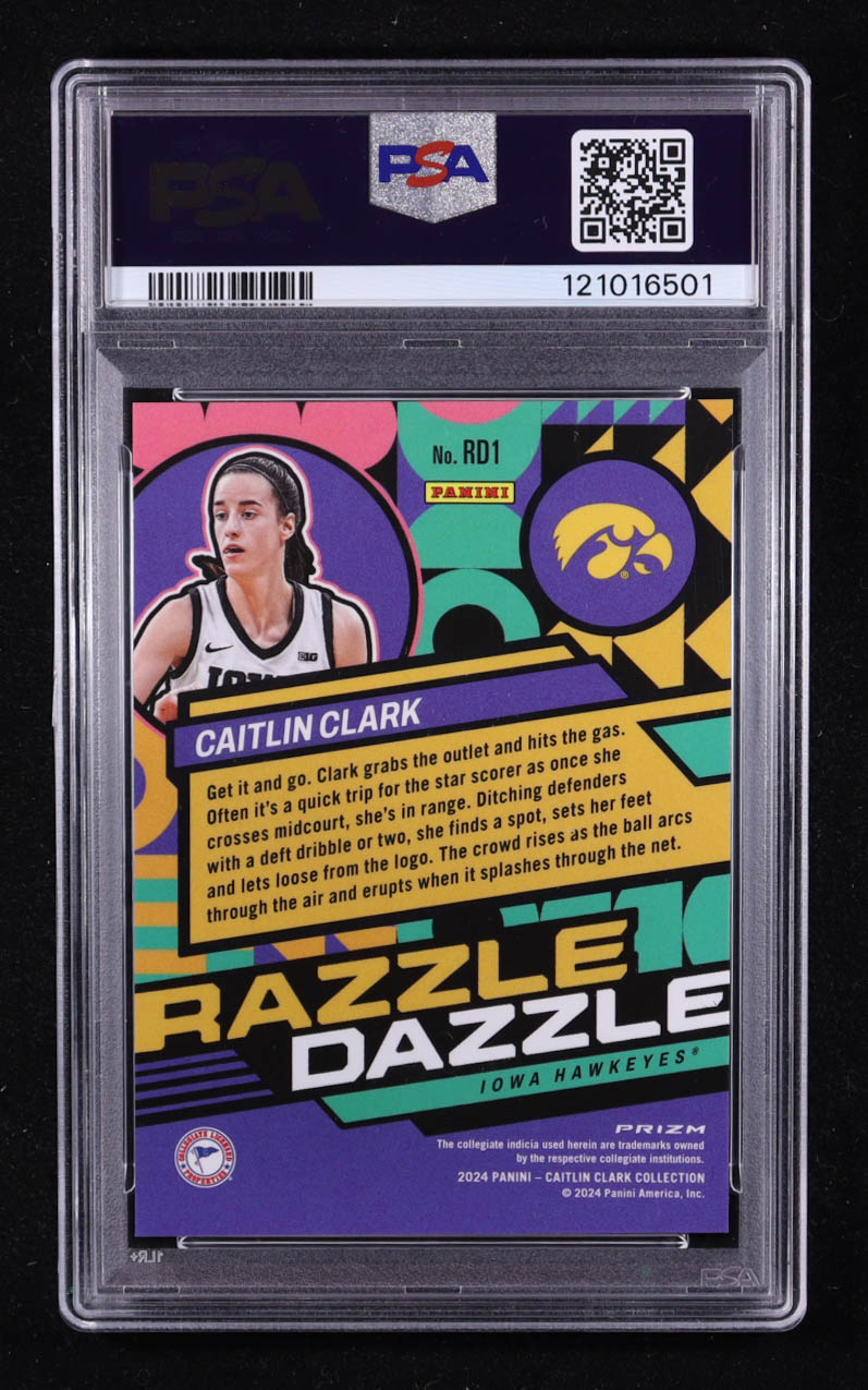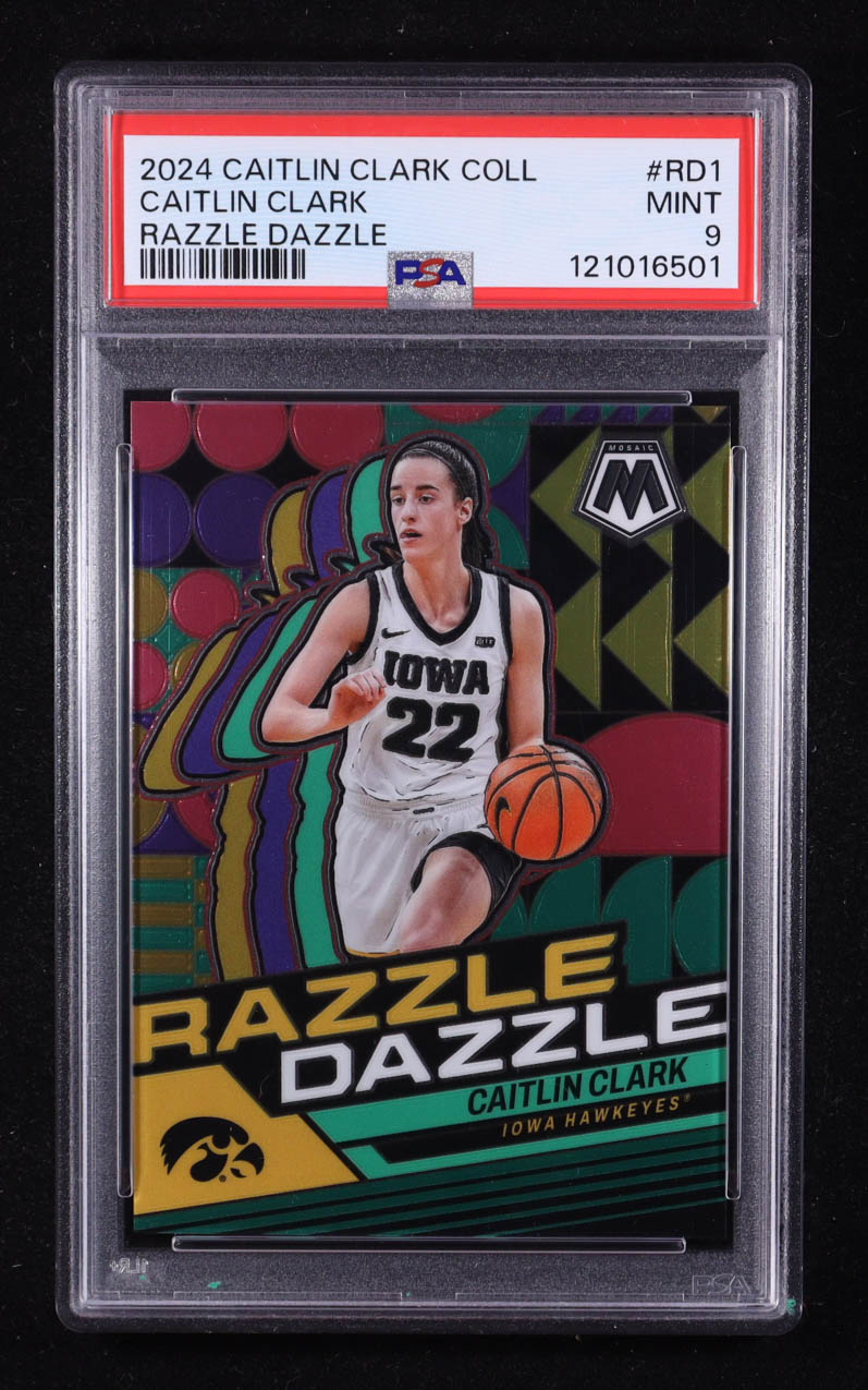 Caitlin Clark 2024 Panini Caitlin Clark Collection Mosaic Razzle Dazzle #RD1 RC (PSA 9)