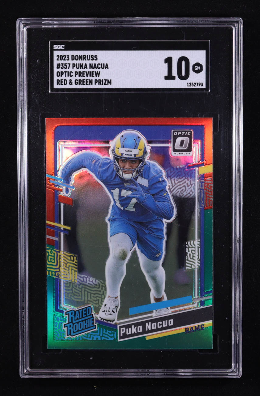 Puka Nacua 2023 Donruss Optic Rated Rookies Preview Red and Green #357 RC (SGC 10)