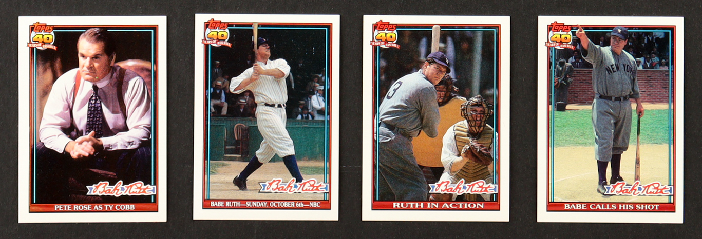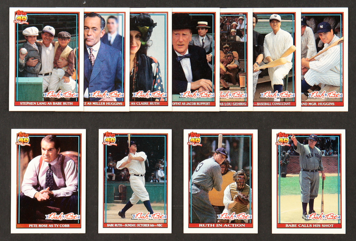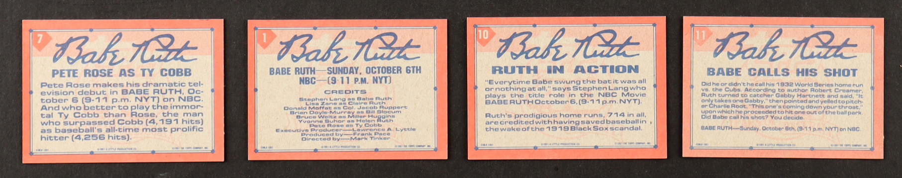 1991 Topps Babe Ruth NBC TV Movie Complete Set of (11) Cards with Pete Rose As Ty Cobb #7, Babe Ruth #1, Ruth In Action #10, Babe Calls His Shot #11