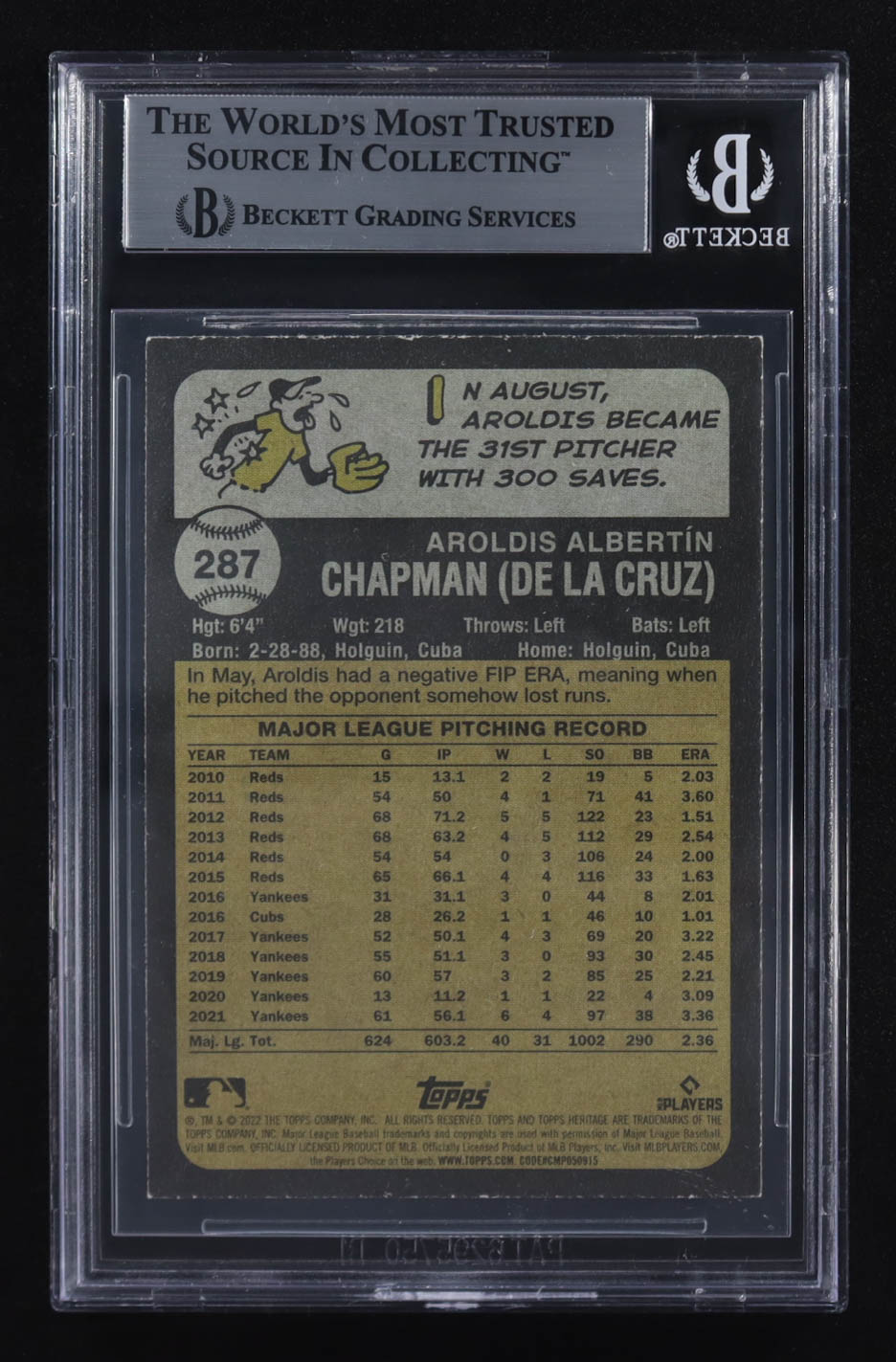 Aroldis Chapman Signed 2022 Topps Heritage #287 (BGS Encapsulated)