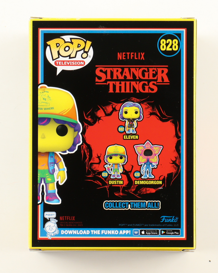 Figure measures approximately 4" tall. Hand-signed on the packaging by Gaten Matarazzo. Please note, the window has been swapped.