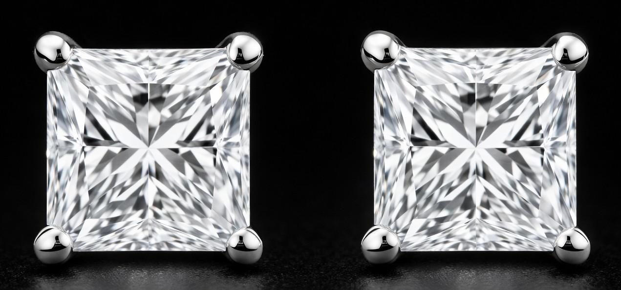 3.74 Carats Lab Grown Diamond Stud Earrings G, VS1 | $3,600 Estimated Retail Value (UGL & IGI Certs) | Brand New | Princess Cut