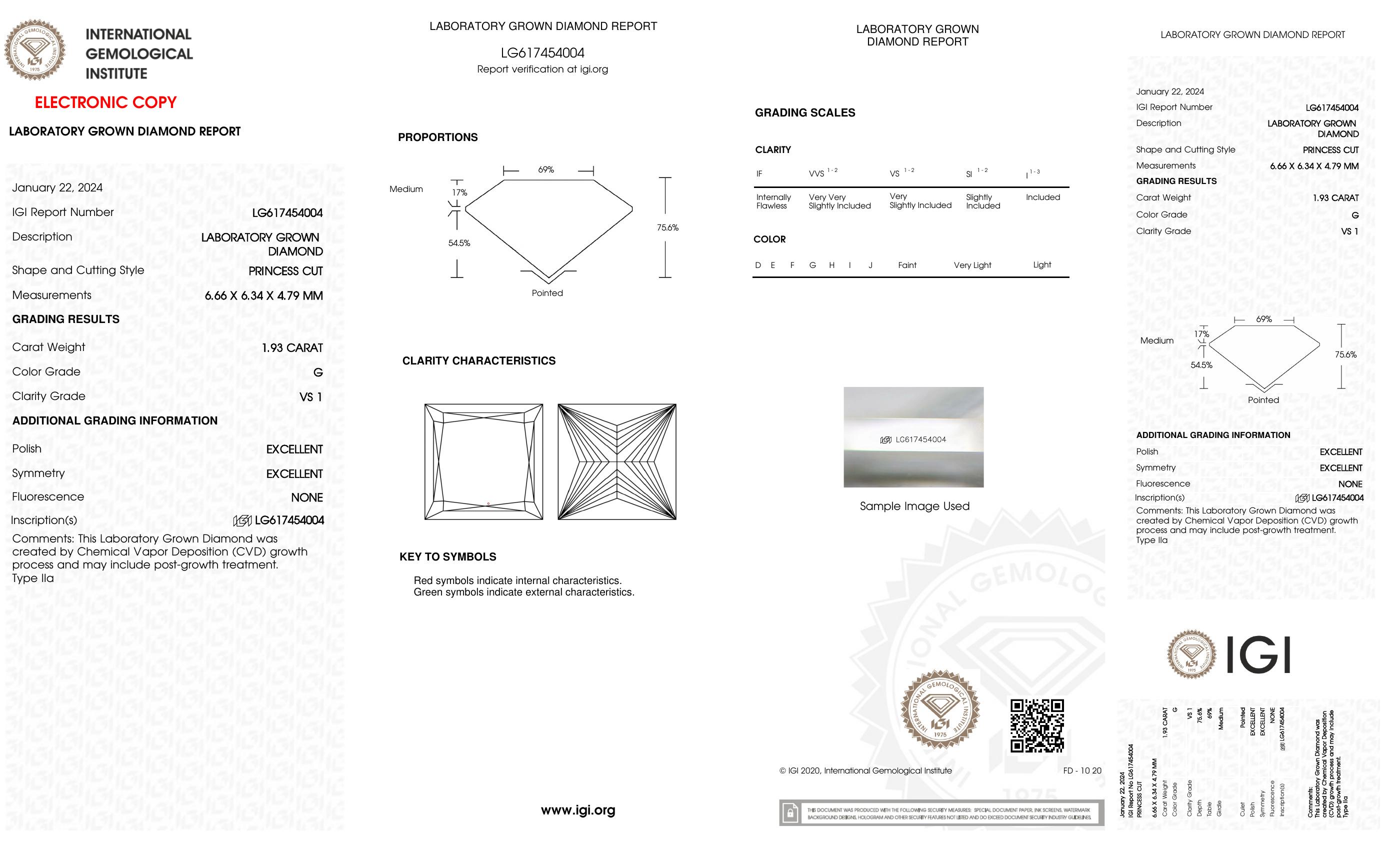 The diamonds feature precision laser inscriptions with the IGI certificate numbers, ensuring authenticity and traceability.
