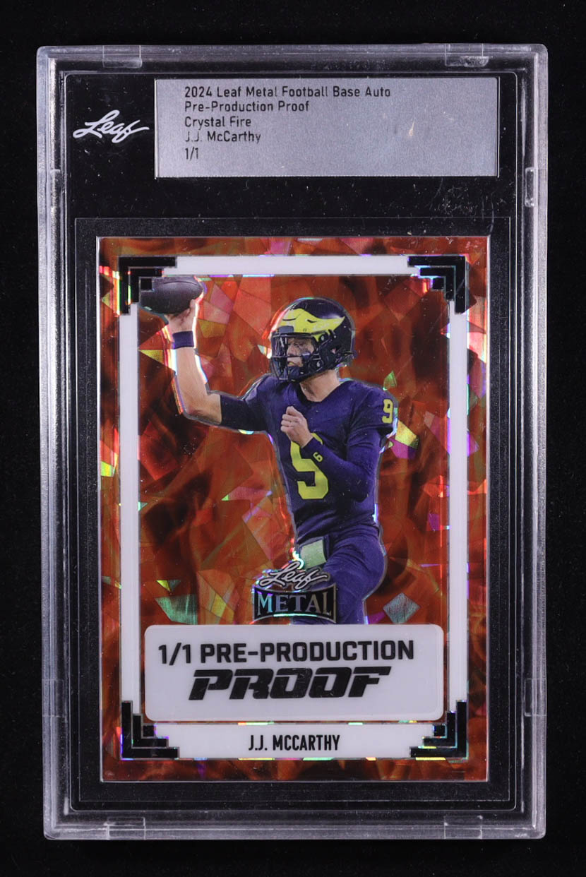 J.J. McCarthy 2024 Leaf Metal Autographs Pre-Production Proof Crystal Fire #NNO #1/1 RC (Leaf)