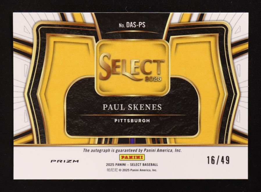 Paul Skenes 2025 Select Diamond Action Signatures Blue Prizms #13 #16/49