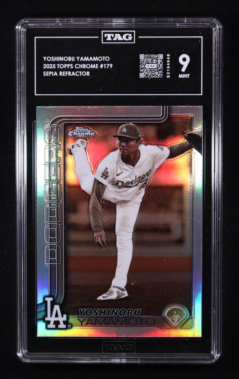 Yoshinobu Yamamoto 2025 Topps Chrome Sepia Refractor #179 (TAG 9)