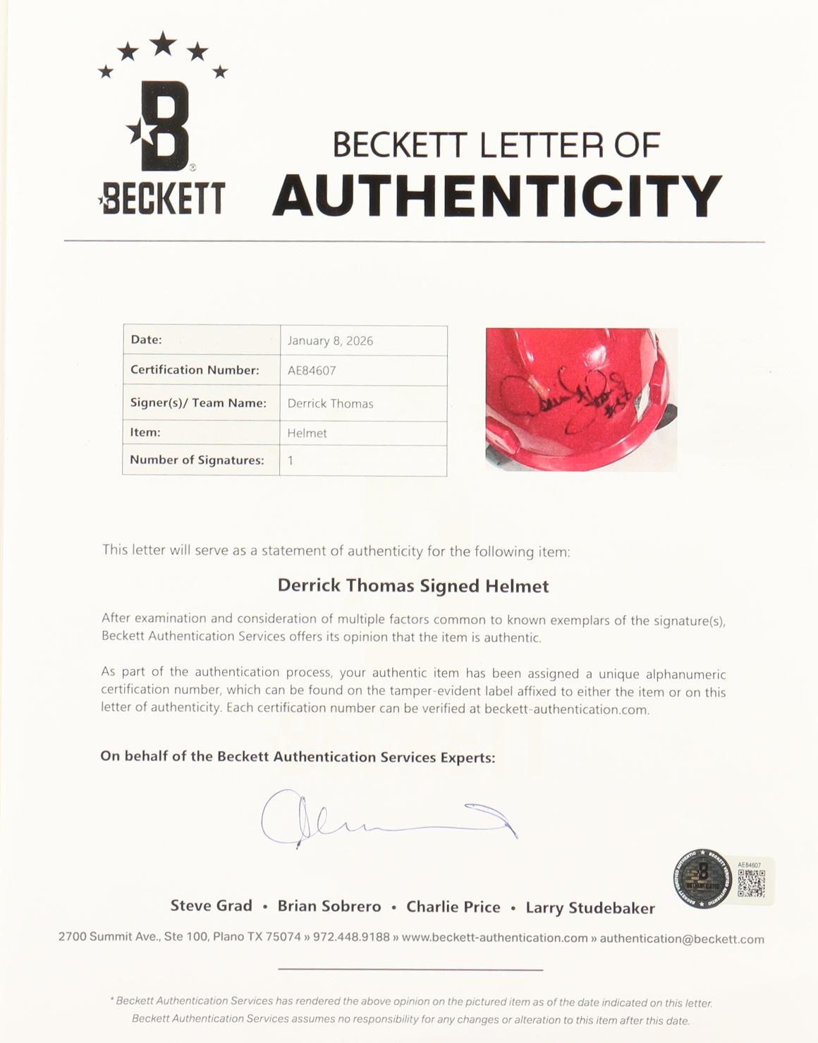The autograph includes an official Beckett Authentication Services hologram and matching LOA for authenticity purposes.