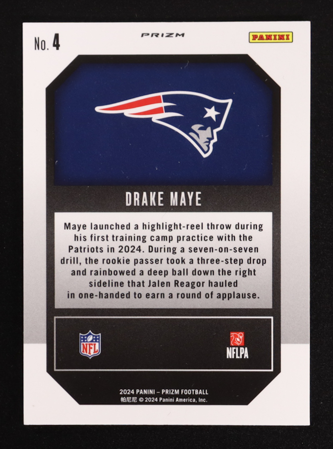 Drake Maye 2024 Panini Prizm Emergent Prizms Green #4 RC