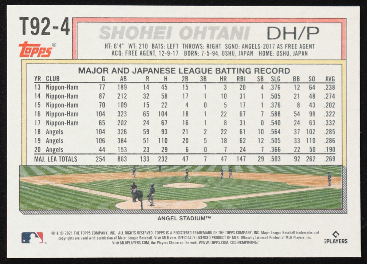 Shohei Ohtani 2021 Topps Update '92 Topps Redux #T924