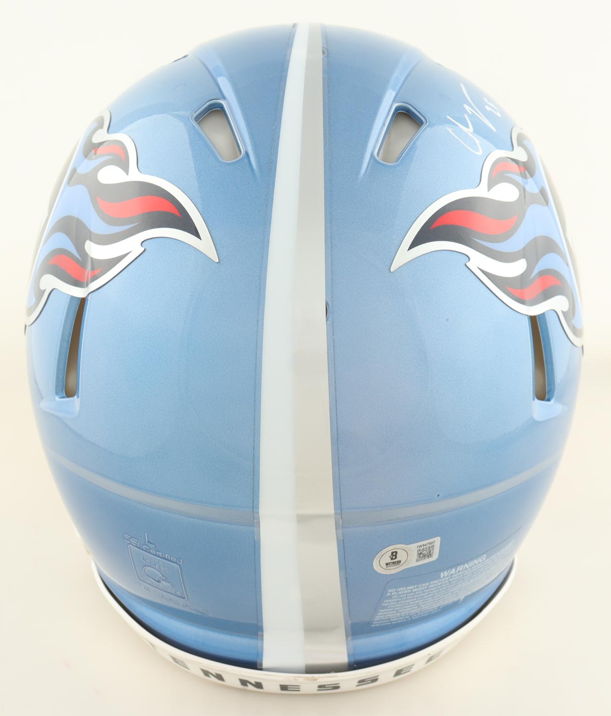 Riddell Tennessee Titans Full-Size Authentic On-Field Flash Alternate Speed Helmet. Hand-signed by Chris Johnson.