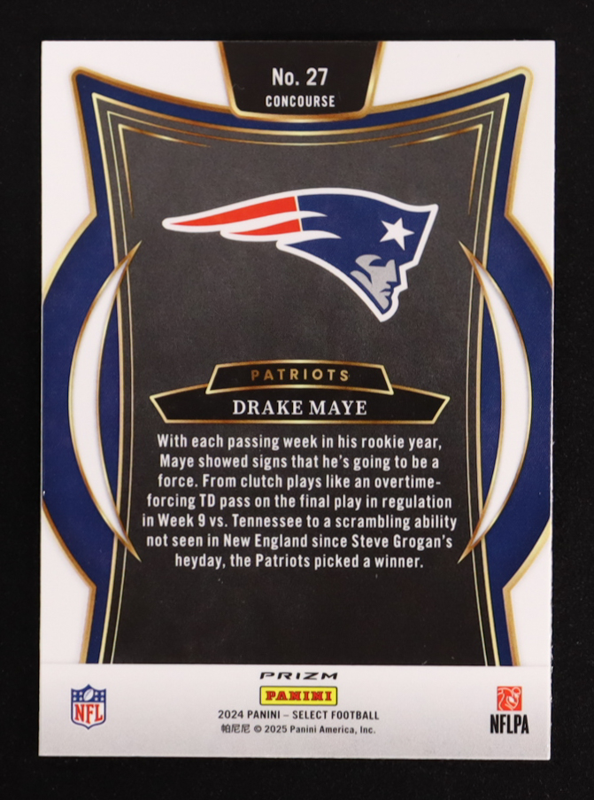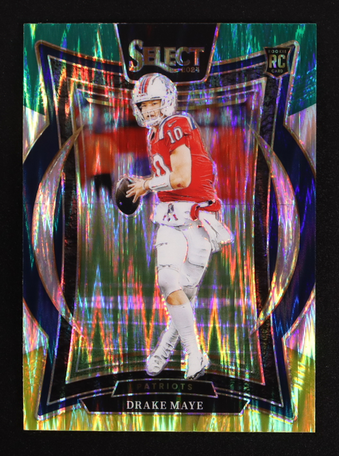 Drake Maye 2024 Select Prizm Green and Yellow Shock #27 RC