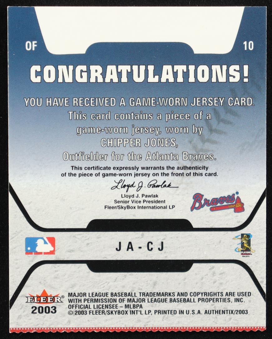 Chipper Jones 2003 Fleer Authentix Game Game-Worn Jersey #CJ