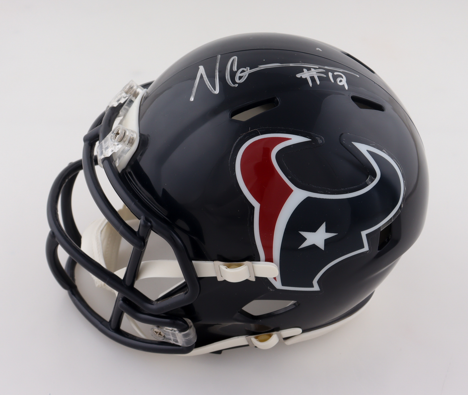 Riddell Houston Texans Speed Mini Helmet. Hand-signed by Nico Collins.