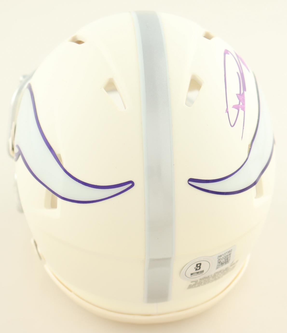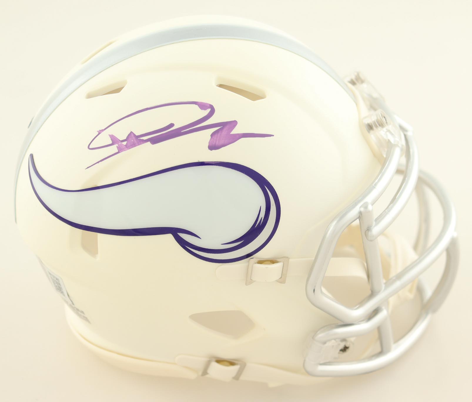 Riddell Minnesota Vikings Alternate Speed Mini Helmet. Hand-signed by Jordan Addison. Note that the signature shows signs of smearing. Please see photos for details regarding the condition of the item.