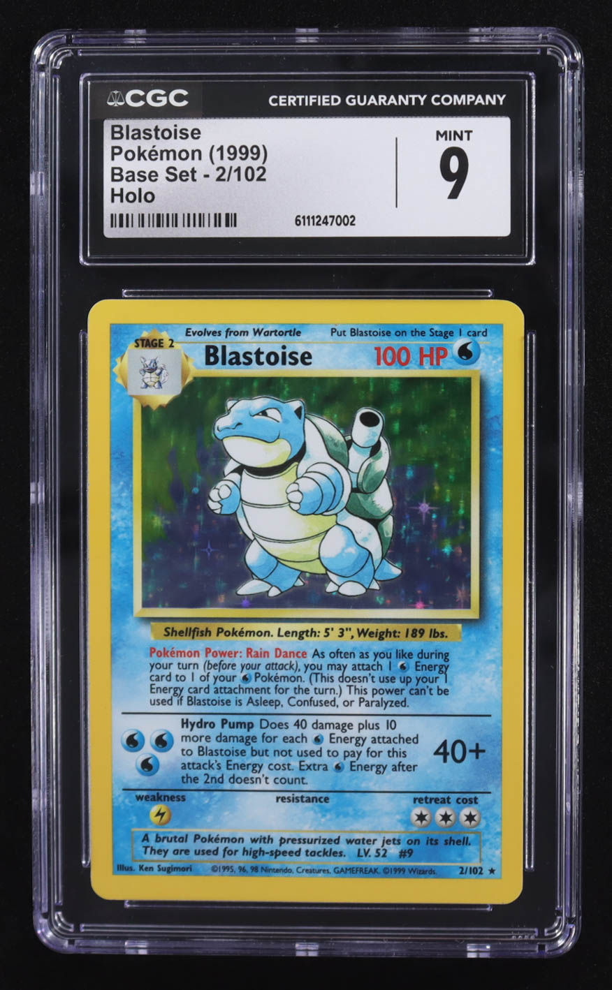 Blastoise 1999 Pokemon Base Unlimited #2 Holo (CGC 9)