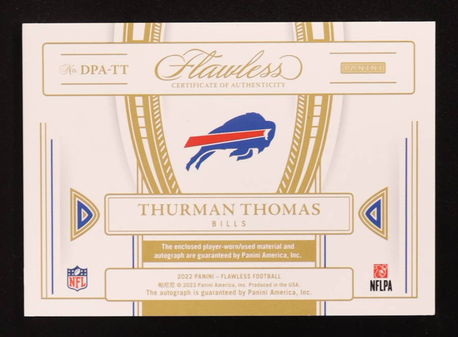 Thurman Thomas 2022 Panini Flawless Distinguished Patch Autographs Silver #23 #14/20