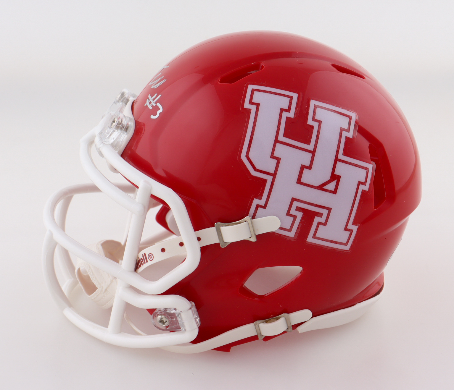 Riddell Houston Cougars Speed mini helmet. Has been hand-signed by Tank Dell.