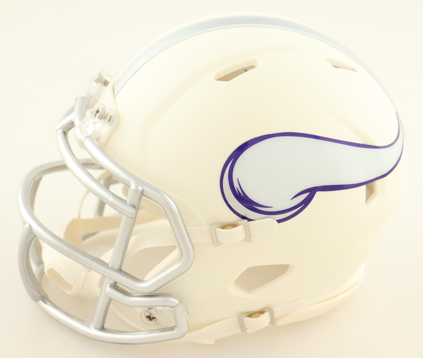 Riddell Minnesota Vikings Alternate Speed Mini Helmet. Hand-signed by Jordan Addison. Note that the signature shows signs of smearing. Please see photos for details regarding the condition of the item.
