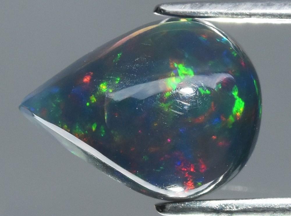 One (1) Loose Pear Cabochon Cut Natural Black Opal