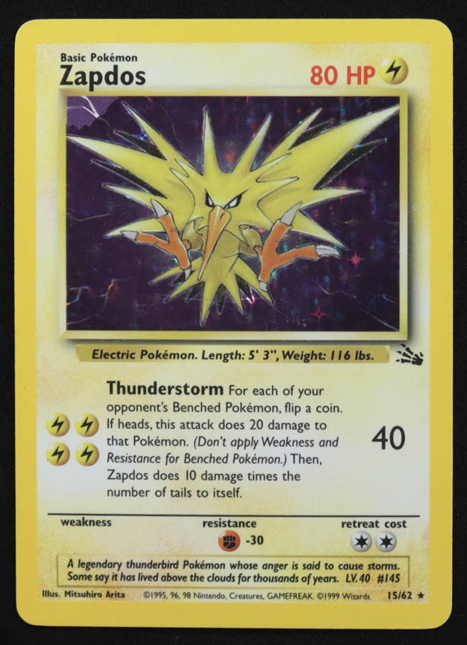 Zapdos 1999 Pokemon Fossil Unlimited #15 Holo