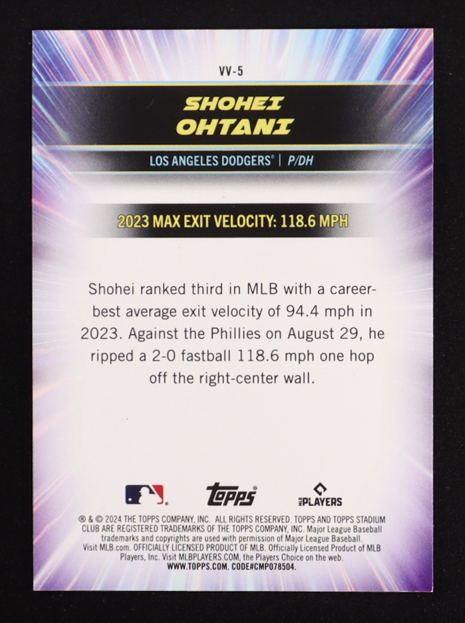 Shohei Ohtani 2024 Stadium Club Virtuosos of Velocity #VV5