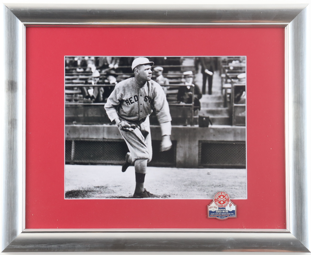 Babe Ruth Yankees "Pitching at Fenway Park" Custom Framed Photo Display with 1915 World Series Pin