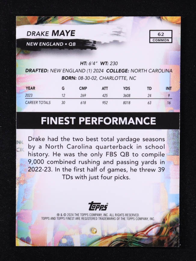 Drake Maye 2024 Finest #62 RC